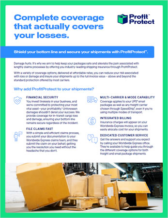 In our downloadable tip sheet, we've outlined the benefits of selecting freight shipping insurance with UPS Capital Insurance Agency, Inc. Through our partnership with UPS Capital, Worldwide Express helps keep your freight shipments safe and alleviates the hassle of lengthy claims processes. By understanding the differences between carrier liability and shipment insurance, you can make an educated decision about which level of protection is best suited for your business.