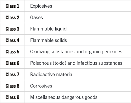 - Hazmat class. The U.S. Department of Transportation (DOT) categorizes hazmat products in nine classes: